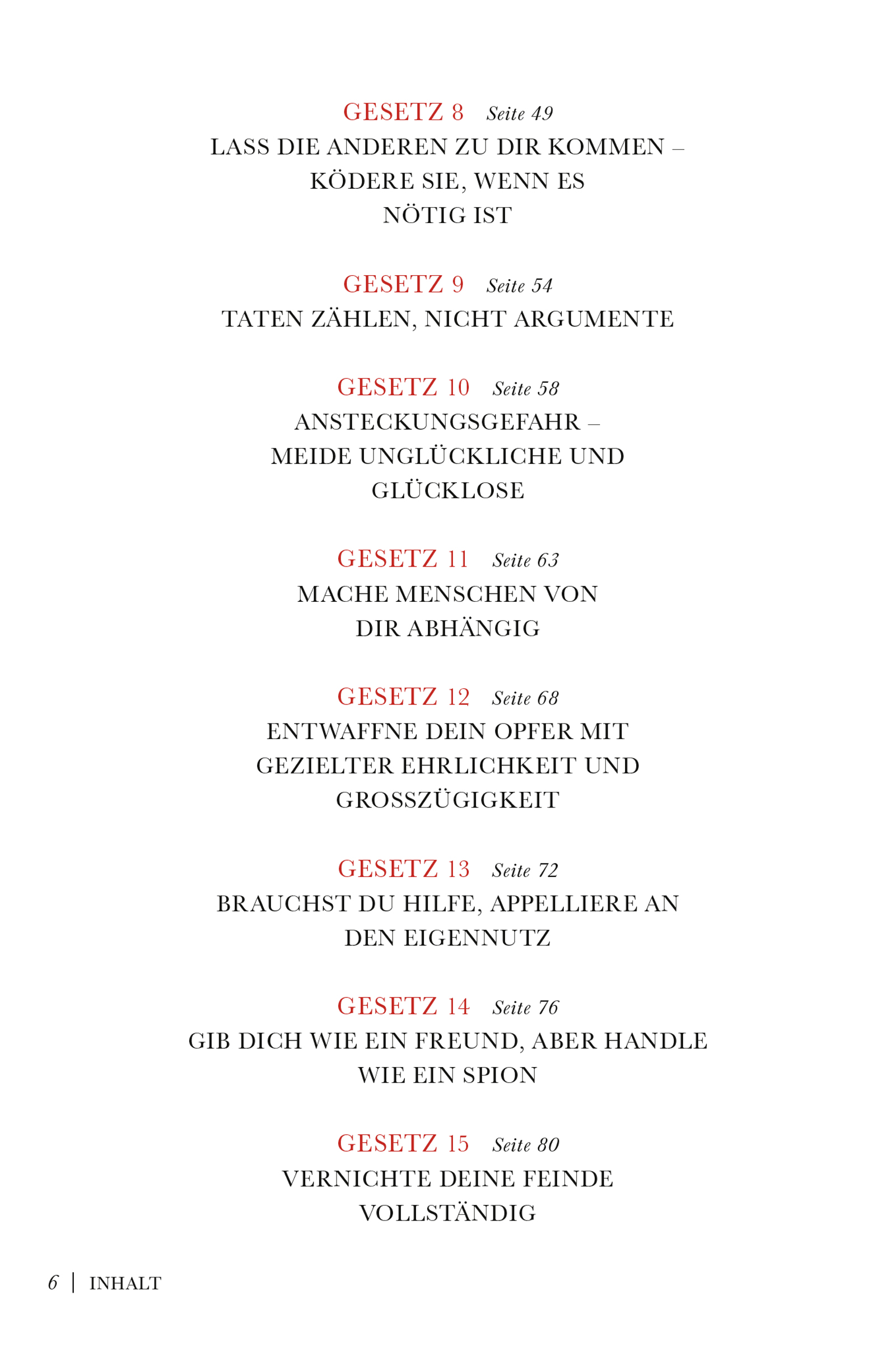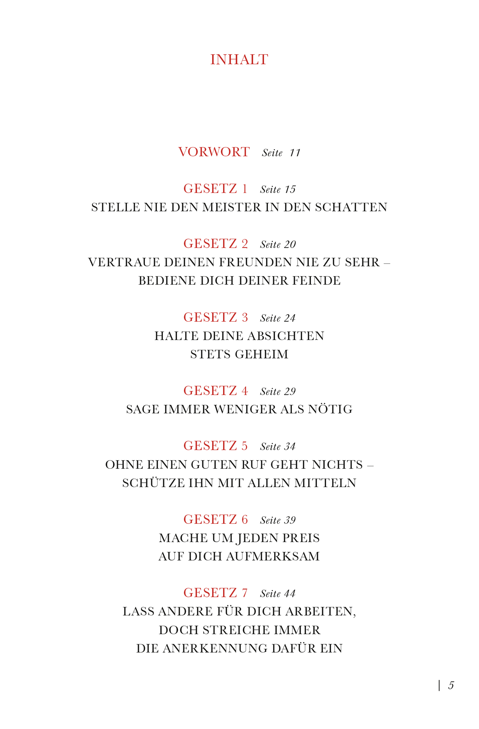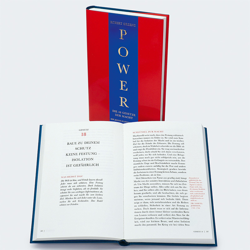 Das Spiel mit der Macht liegt in der Natur des Menschen. Jeder kämpft um seine eigene Macht, jeder fürchtet die Macht der anderen, aber niemand weiß so recht, wie Macht zustande kommt und wie sie wirkt. In 48 Gesetzen fasst das Buch zusammen, wie Macht erkämpft und verteidigt wird – im Privatleben und im Beruf.