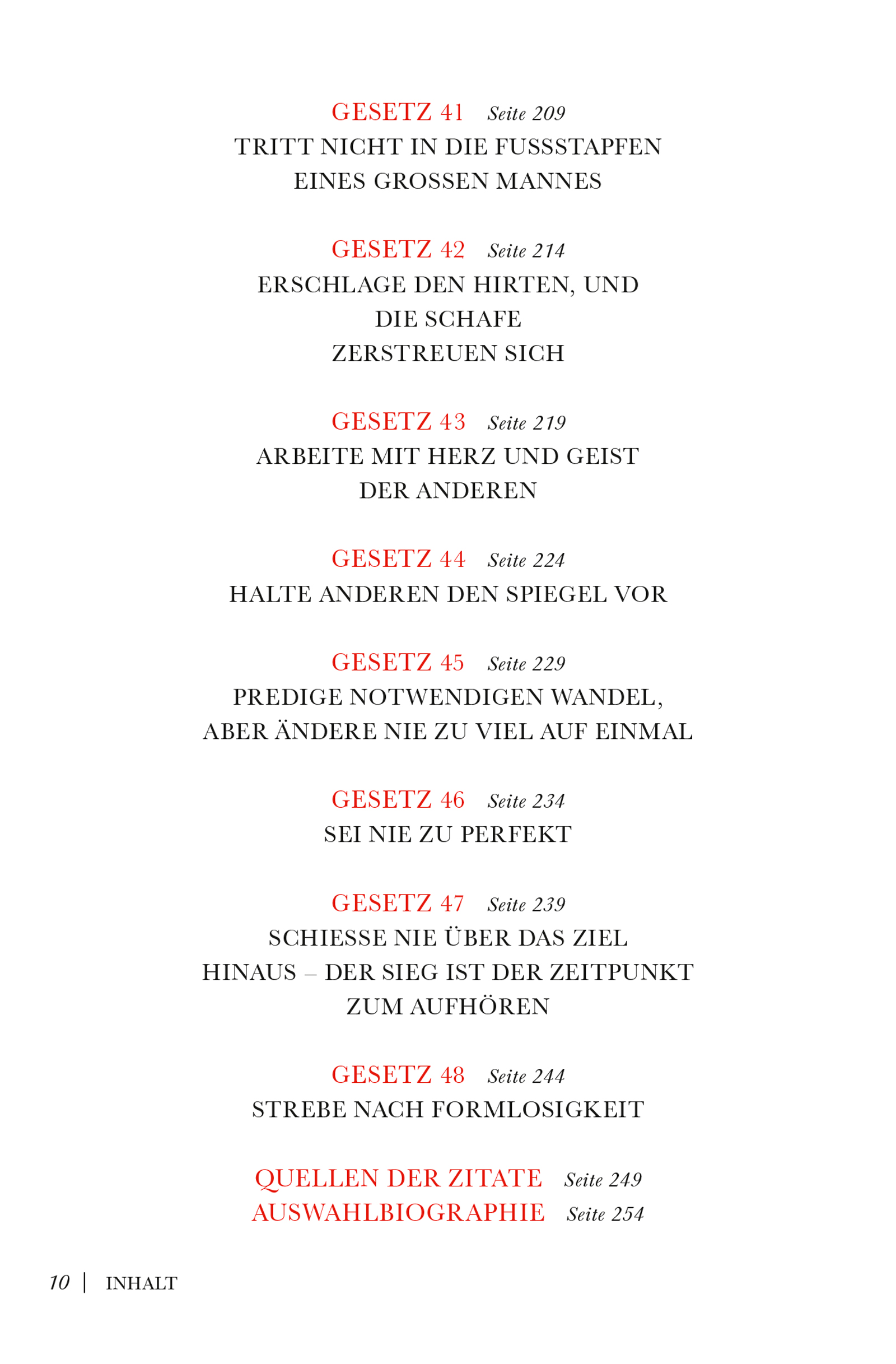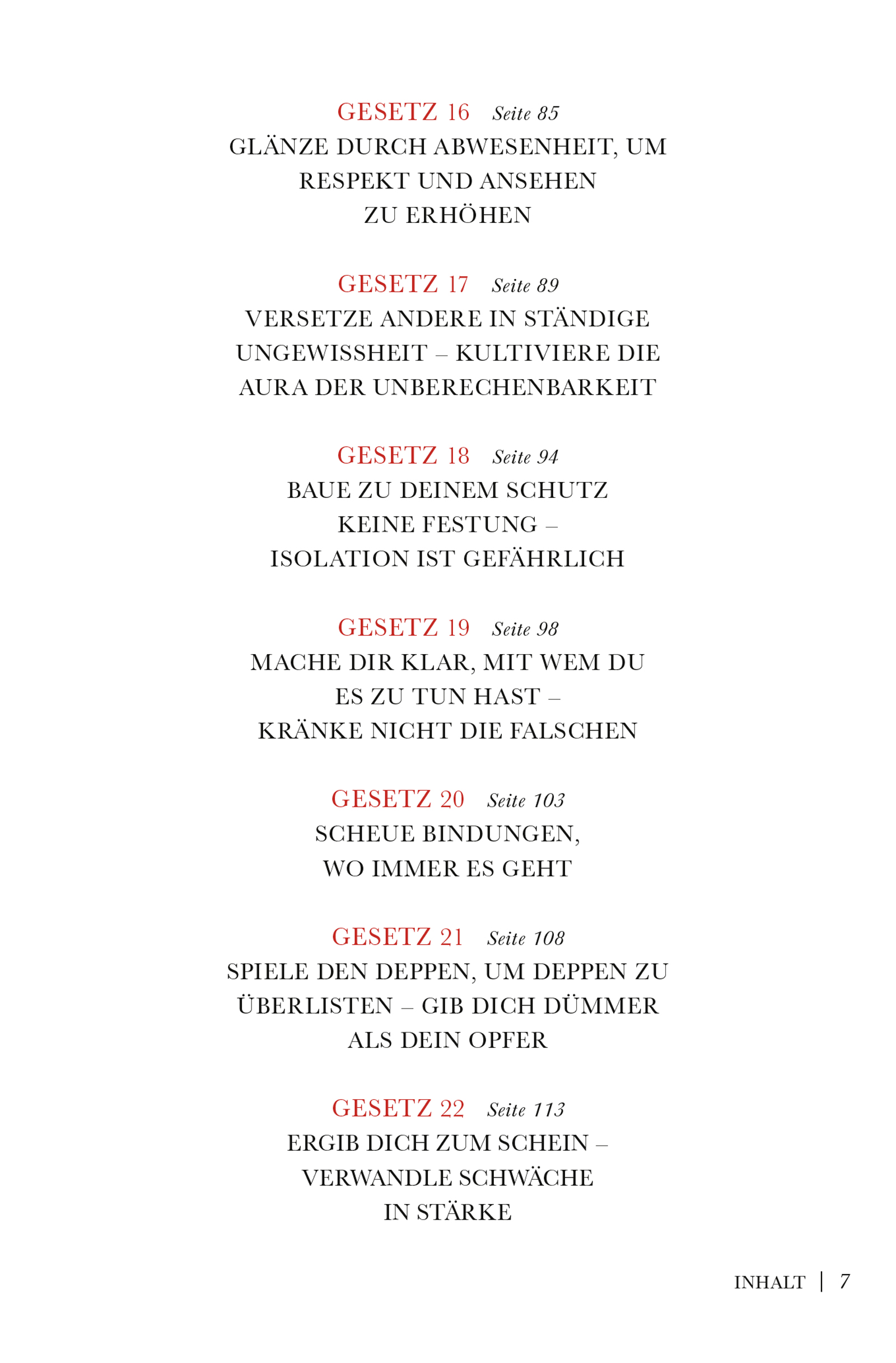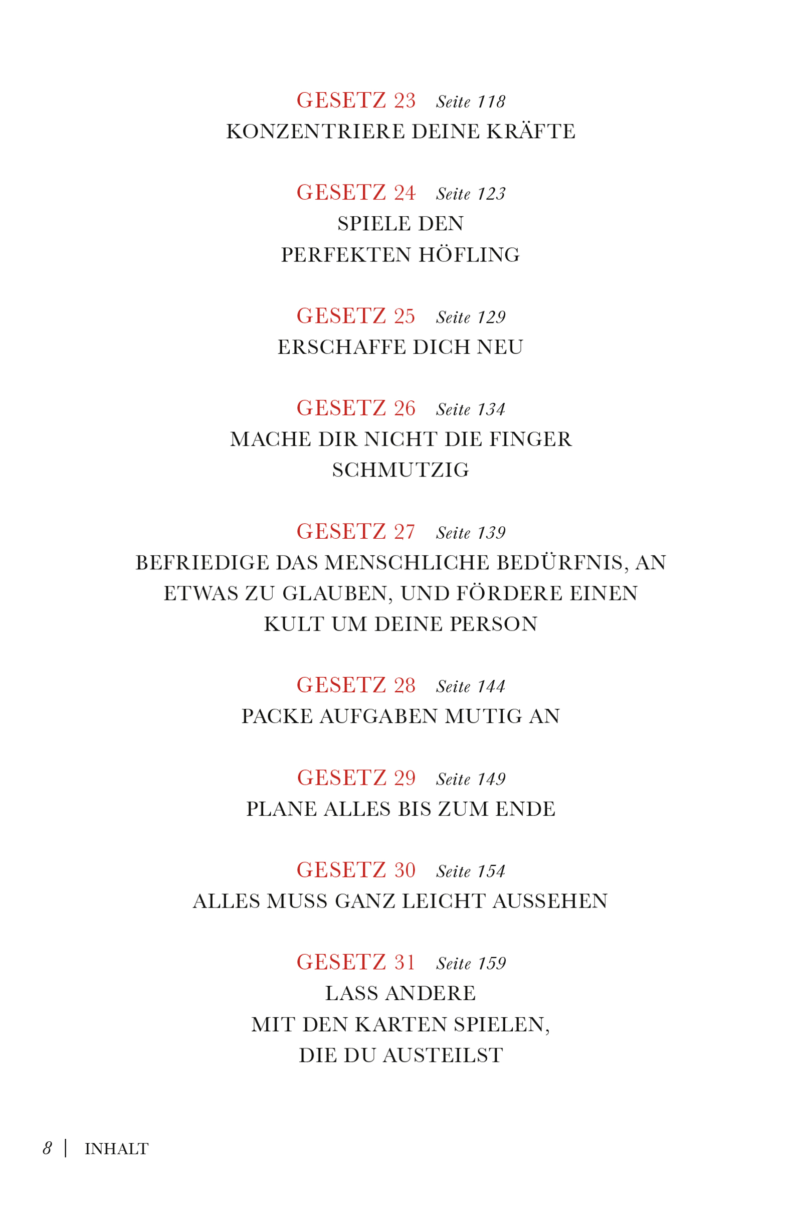 Das Spiel mit der Macht liegt in der Natur des Menschen. Jeder kämpft um seine eigene Macht, jeder fürchtet die Macht der anderen, aber niemand weiß so recht, wie Macht zustande kommt und wie sie wirkt. In 48 Gesetzen fasst das Buch zusammen, wie Macht erkämpft und verteidigt wird – im Privatleben und im Beruf.